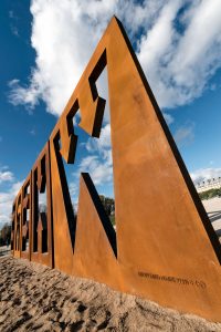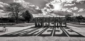 Deux oeuvres monumentales « HERE » et « WHERE » se répondent à deux endroits du jardin.